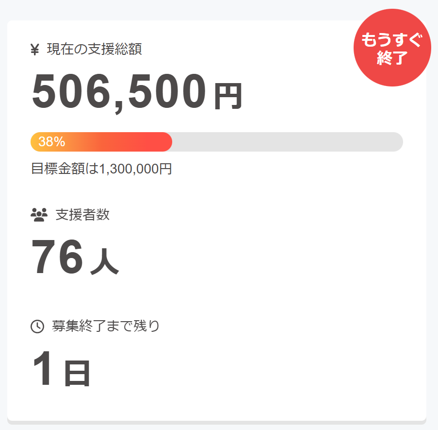 ご支援いただいた皆さま、本当にありがとうございました!!!!!