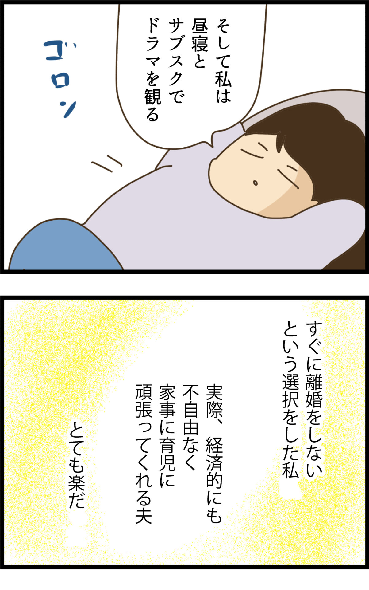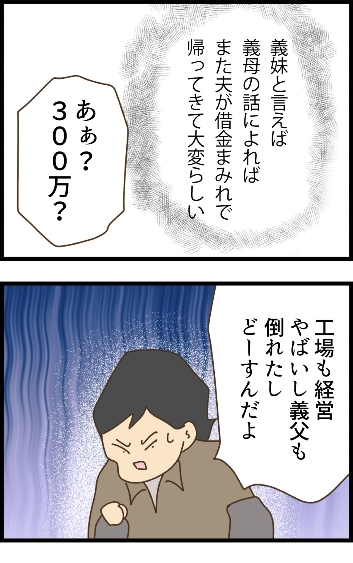 夫と和解したのではなく屈服させて思い通りにしてるだけ。根本的にはこの人他力本願の人間じゃん!ずーーーーと、続いてた義妹との諍いも自分でなんとかしようとせず、夫が何もしてくれない事に対する恨みからの発露だしな。
