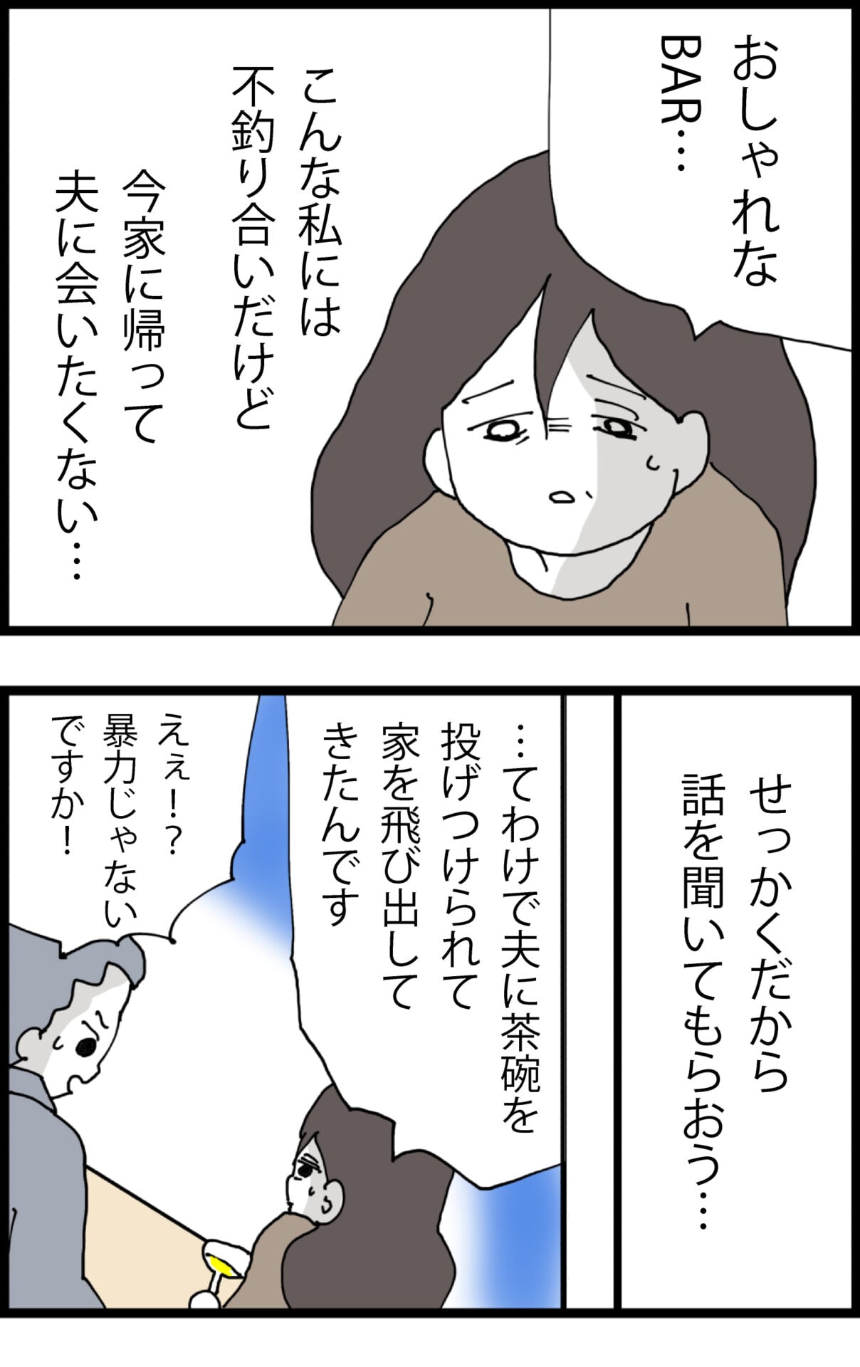 おしゃれなBARで、思わず夫への愚痴をこぼしてしまったミツコ。