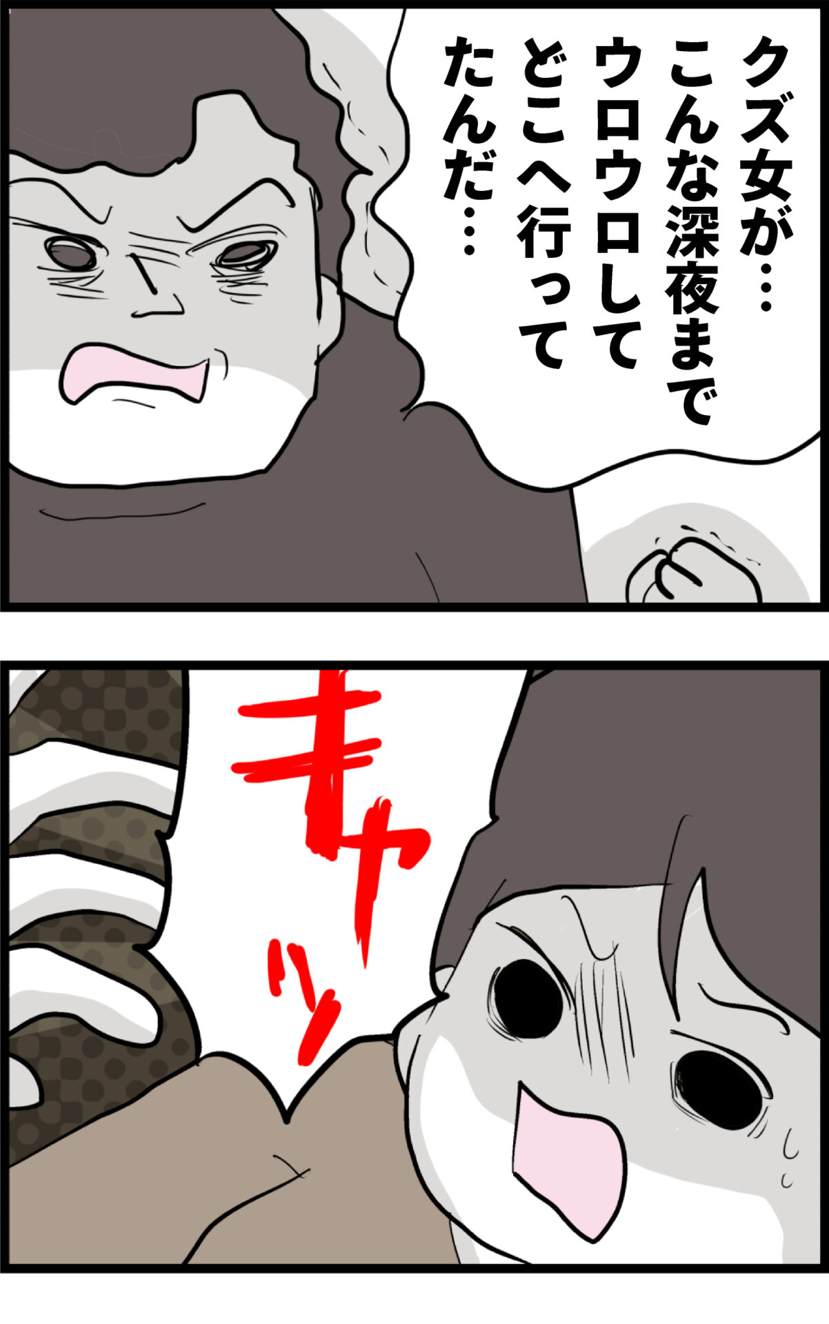 「クズ女が…どこへ行ってたんだ…」