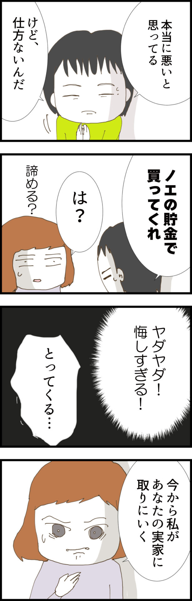 「必要な分はノエの貯金で買えばいいじゃん」最低すぎる夫の発言に怒り爆発!