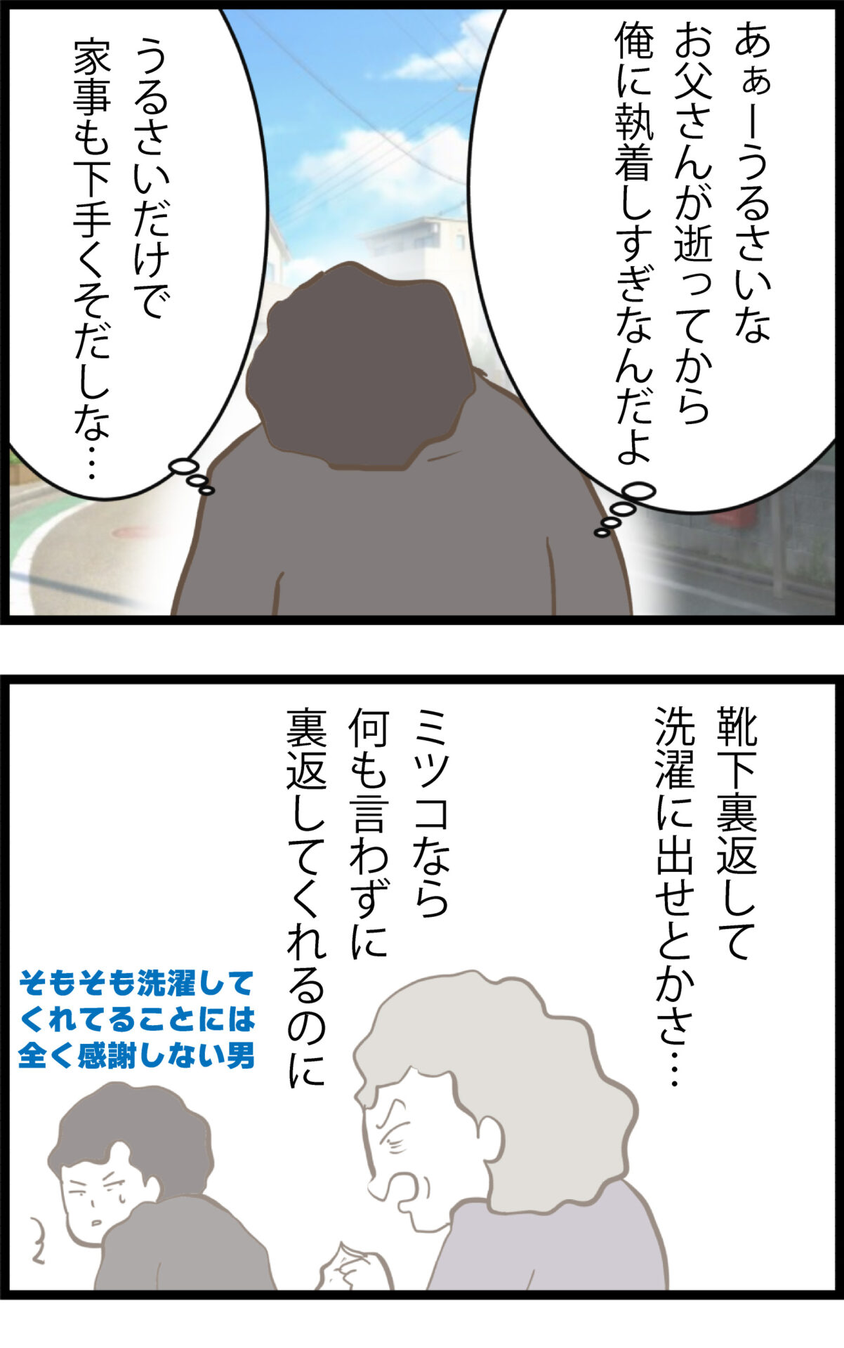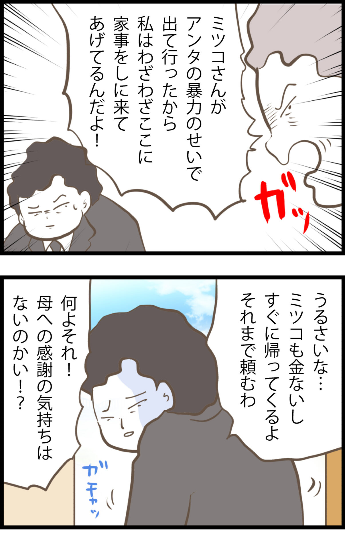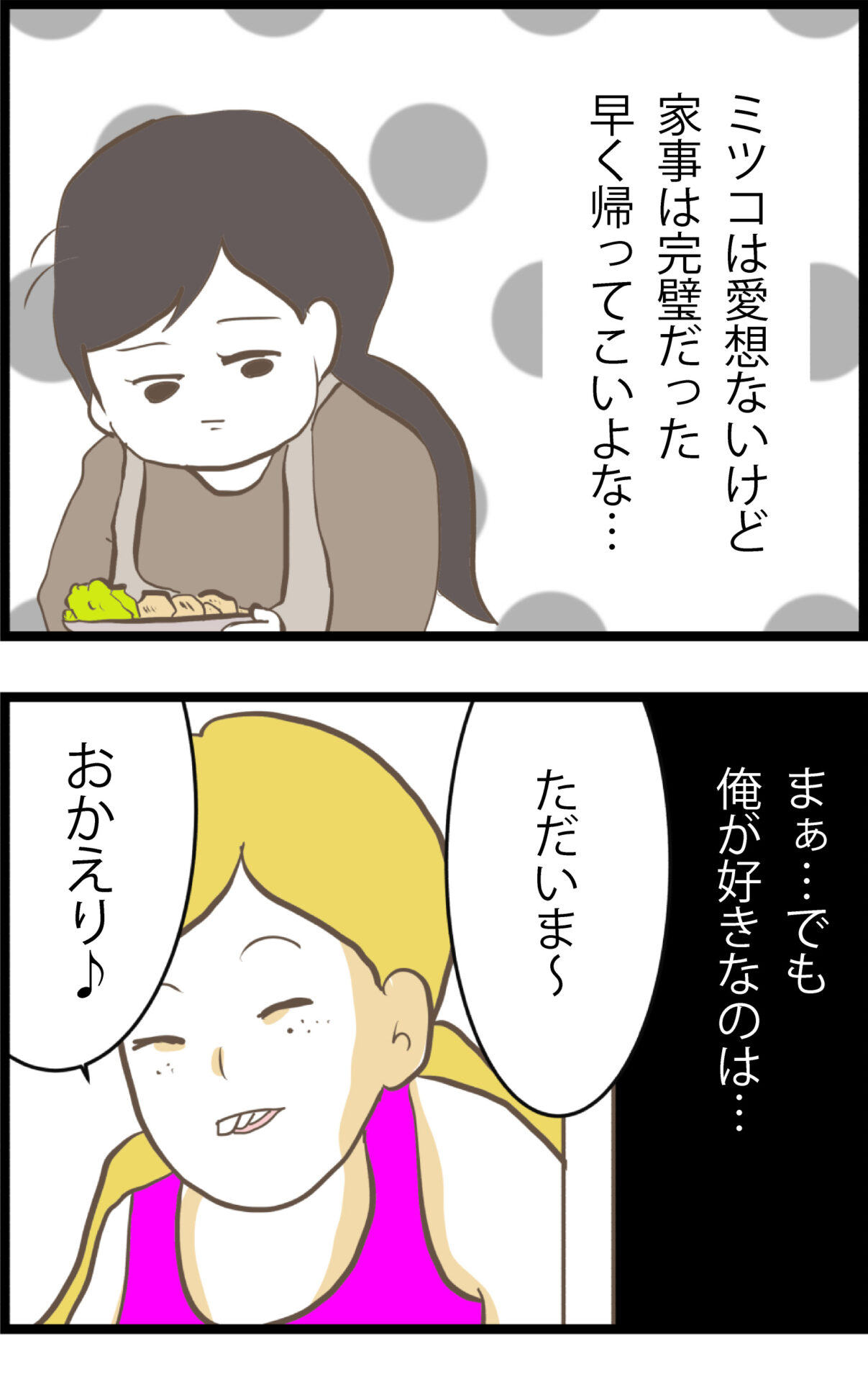ミツコがやっていた完璧な家事や料理に一切感謝するどころか、「愛想ないけど家事は完璧だった」と都合のいい家政婦扱いするクズ夫。さらに彼が向かった先は……!?