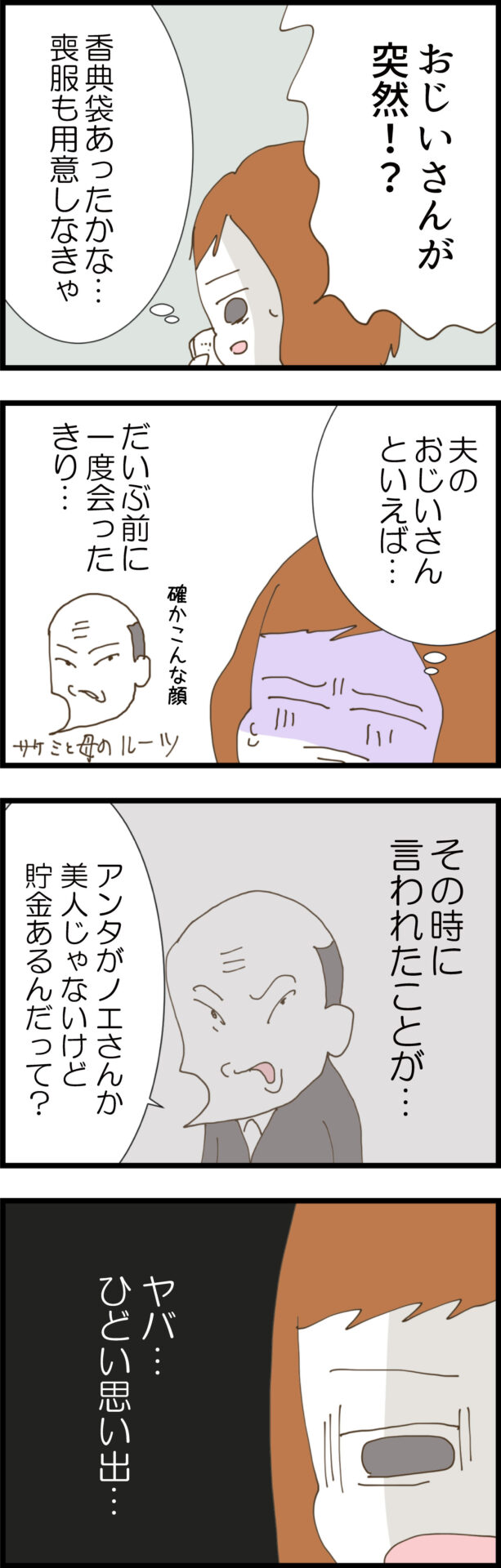 「お葬式だけはって約束したしな…」と渋々会場へ向かったノエ。そこには、スウェット姿で随分とやつれた義妹サケミの姿が。