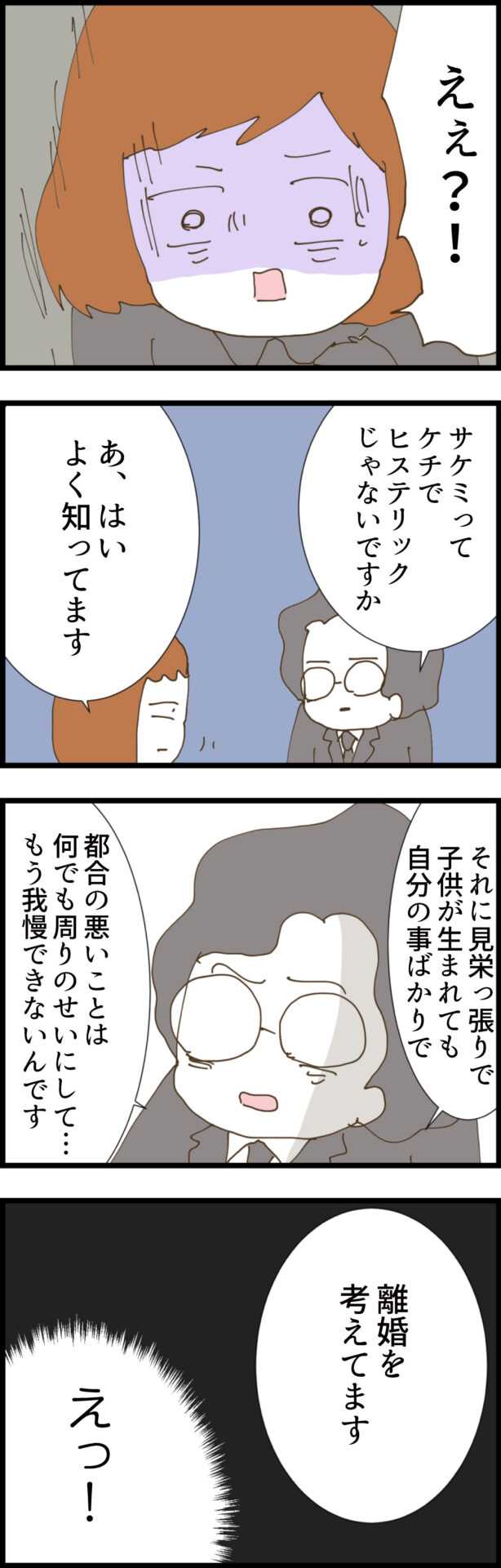 「僕、もうサケミのところへ戻るつもりないんです。離婚を考えてます」
