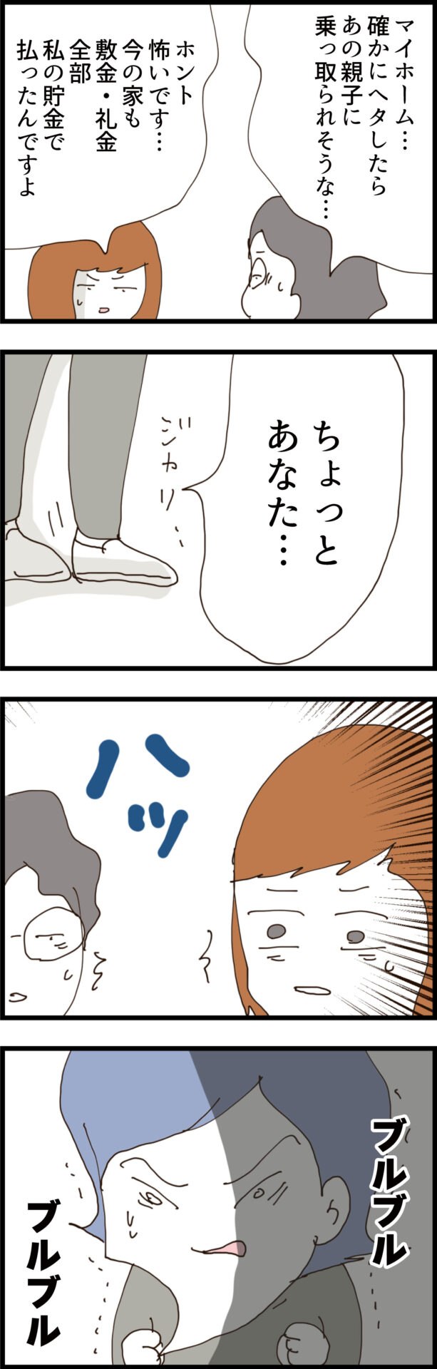 義弟から「貯金を奪われると恐れてるんじゃないですか?」と指摘され、結婚してから搾取され続けている現実に気づくノエ。離婚に応じない夫への悩みを吐露しつつ、「今の夫との2人目とかもういらないし、マイホームは自分と子供の為だけに買いたい」と、ついに夫を見限った本音をこぼすが……。