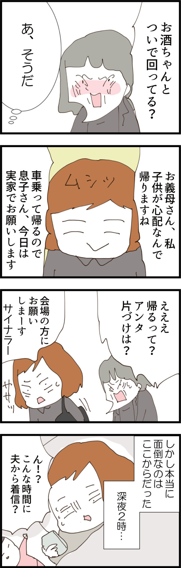 義母の命令をガン無視し、夫を置いて一人帰宅するノエ。しかし深夜2時、夫から着信が入り…。