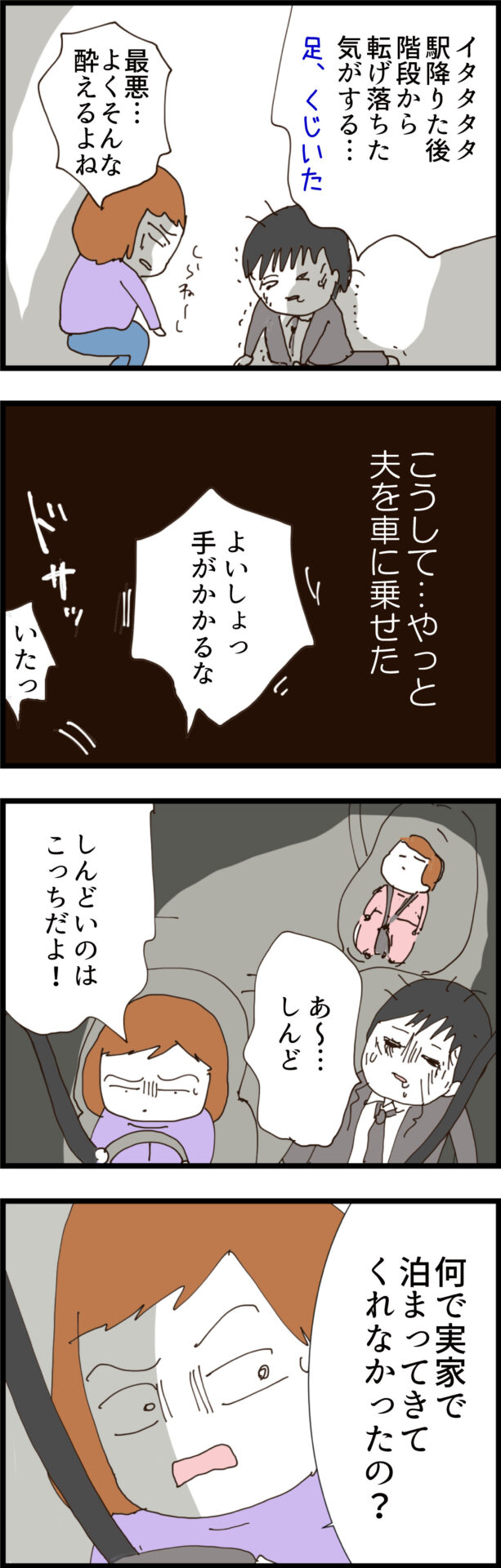 「遅いだろう!」迎えに来させた挙句に逆ギレする夫を、ノエは冷たい目で乱暴に引きずり起こす!