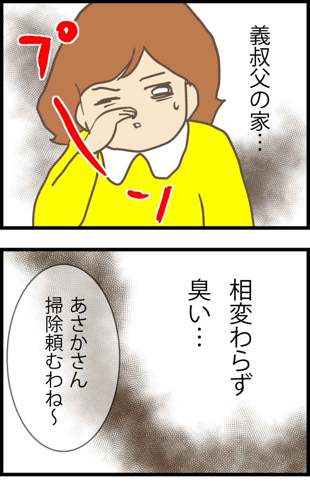 悪臭が残り、義叔父が亡くなった生々しい痕跡が残る部屋。