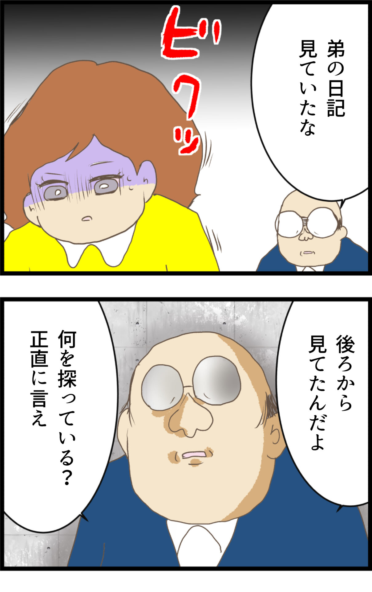 消去されたPCデータの謎を追って、一人で義叔父の家を探索する妻。発見した日記帳には、義叔父が「同性愛者」であったという生涯の秘密と、旅行に行く両親の目を盗み、幼い夫に対して悍ましい行為に及んでいた可能性を示唆する事実が記されていた。