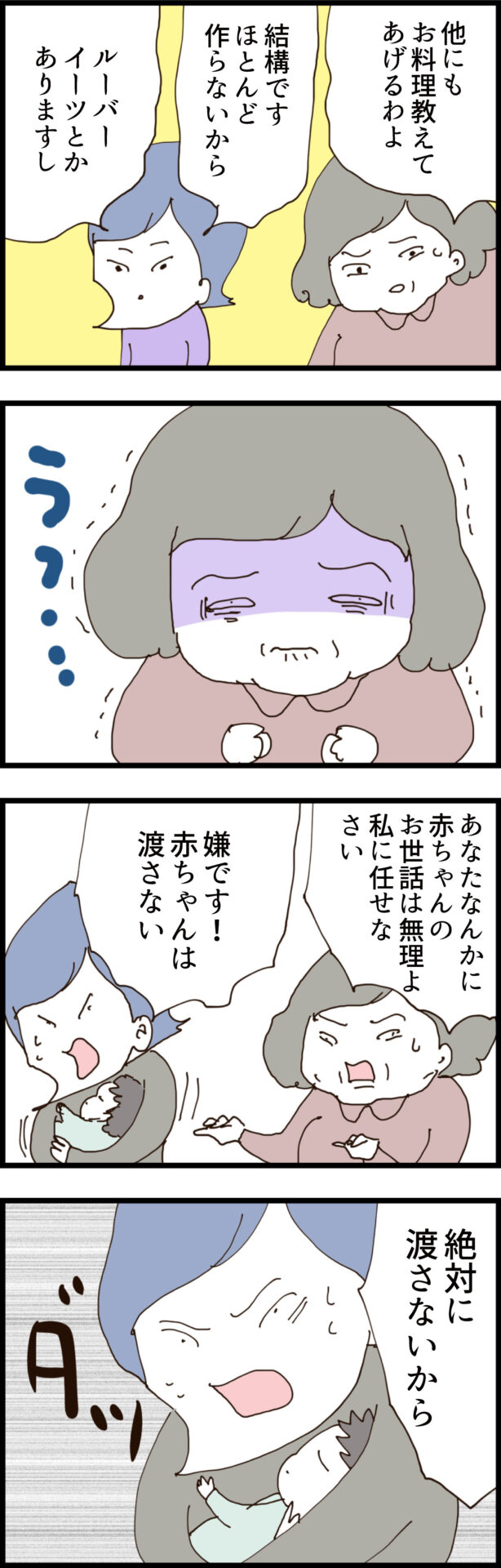 義母は「最初から嫌いだった」と、過去のサケミの無礼すぎる態度を次々と暴露。さらに「あなたに世話は無理、私に任せなさい」と赤ちゃんを奪おうとする。