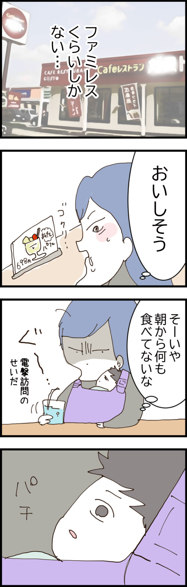 876円しかなくファミレスに逃げ込んだサケミ。朝から何も食べておらず空腹だが、手持ちが少ないため300円のポテトでしのごうとする。