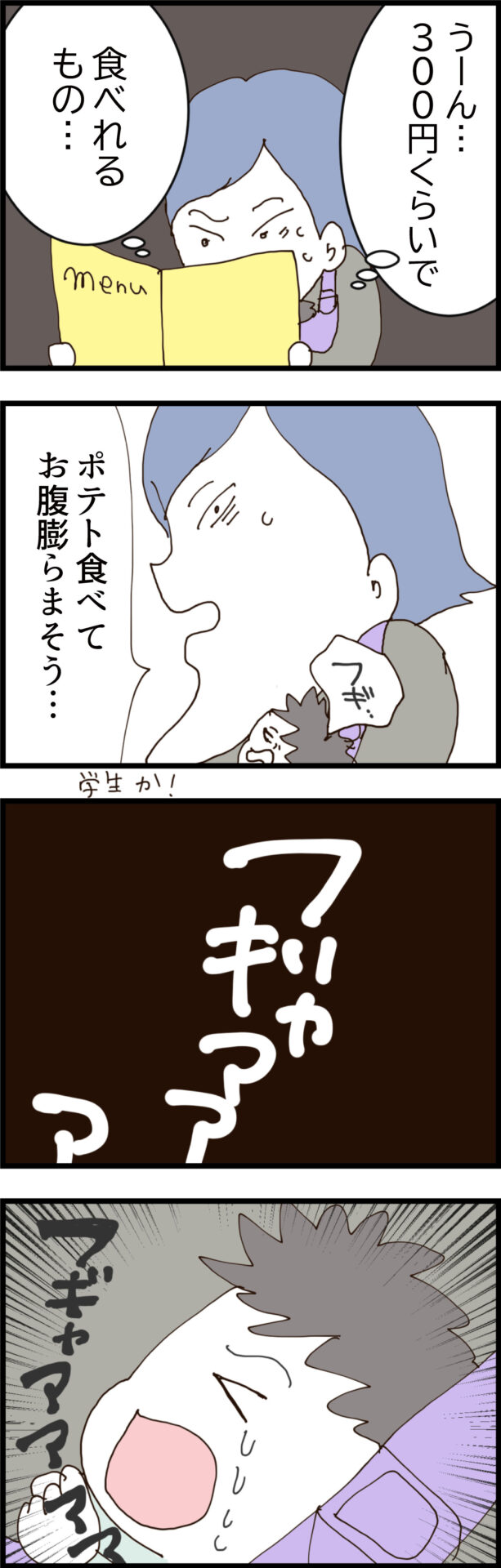 300円のポテトで腹満たそうとか、あんなに見栄張ってたのに惨めすぎるやろ!完全に自業自得やわ!