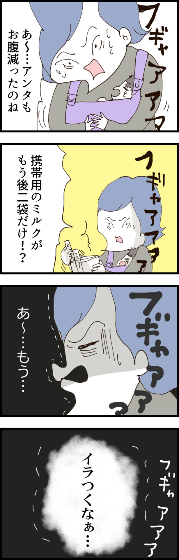 すると赤ちゃんが空腹で大泣きし始める。しかし手持ちのミルクはあと2袋しかなく、サケミは反省するどころか「イラつく」と苛立ちを露わにする。