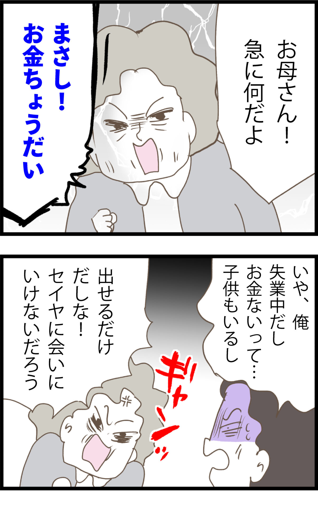 無職となったまさしは、ヒサヨの家で赤ん坊の世話をする日々を送っていた。赤ん坊の寝顔を見てかつての子育てを反省するまさしだったが、直後にタバコを吸うヒサヨに対して顔色を変えて怒鳴り声を上げた。