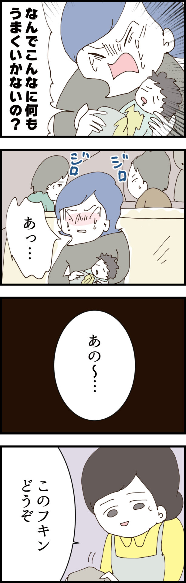 他の客とぶつかり、残り少ない貴重なミルクをこぼしてしまったサケミ。残る最後の1袋でどうにか作り直し、無事に赤ちゃんに飲ませて安堵する。しかしホッとしたのも束の間、赤ちゃんが飲んだミルクを大量に吐き戻してしまう!