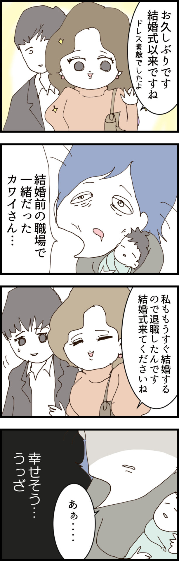 人の幸せ妬んで心の中で呪うとかホンマ性格ひん曲がっとるな!てかカワイさん、旦那(義弟)見かけたん!?ついに義弟が追いつくのか!?急展開すぎる!