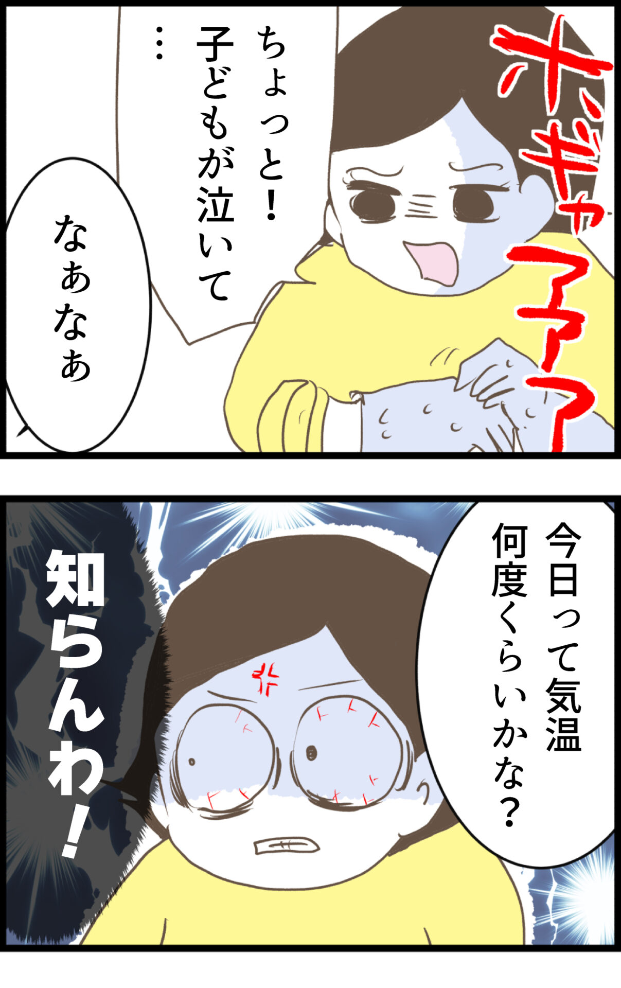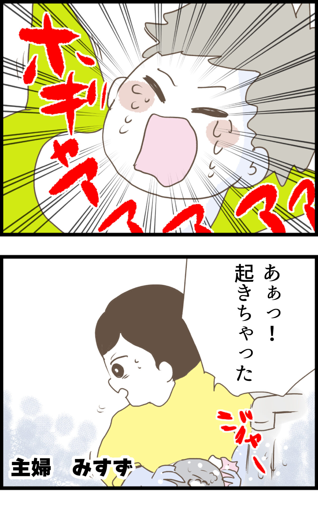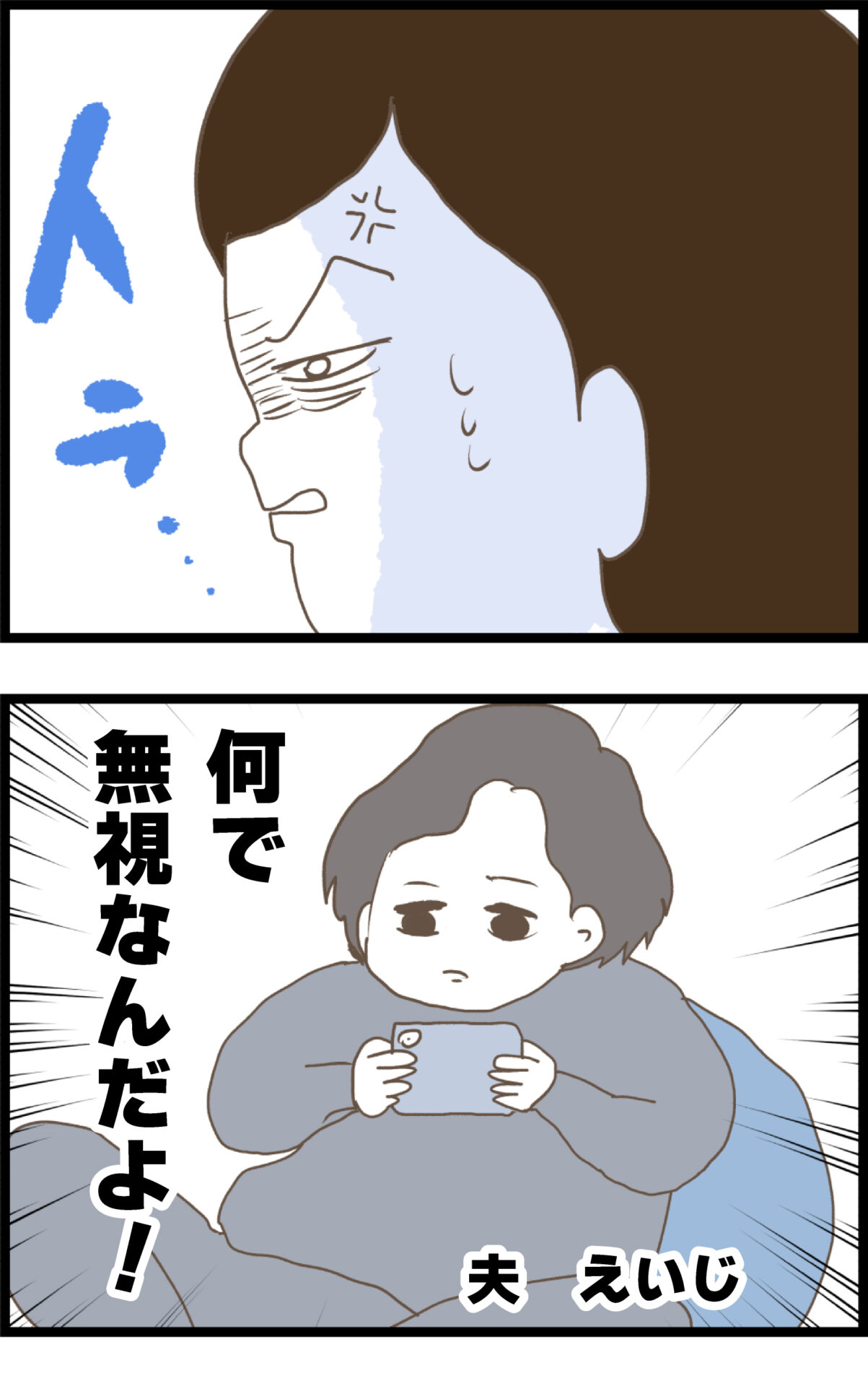 主婦のみすずは、家事の最中に起きて泣き出した赤ちゃんに焦っていた。しかし、夫のえいじは泣き声を完全に無視してスマホをいじり続け、あろうことか飲み会に着ていく上着の相談をしてくるのだった。